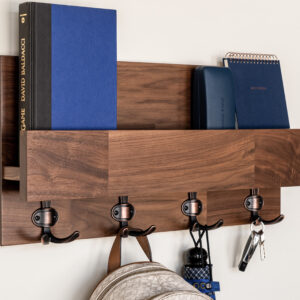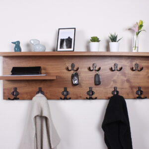 Handcrafted Natural Hardwood Coat Rack & Floating Shelf – Modern Rustic Key & Letter Holder – Model #6