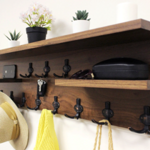 Natural Hardwood Entryway Organizer, Handmade Letter Key Holder and Coat Rack, Wall-mounted Home Décor, Floating Shelf #10