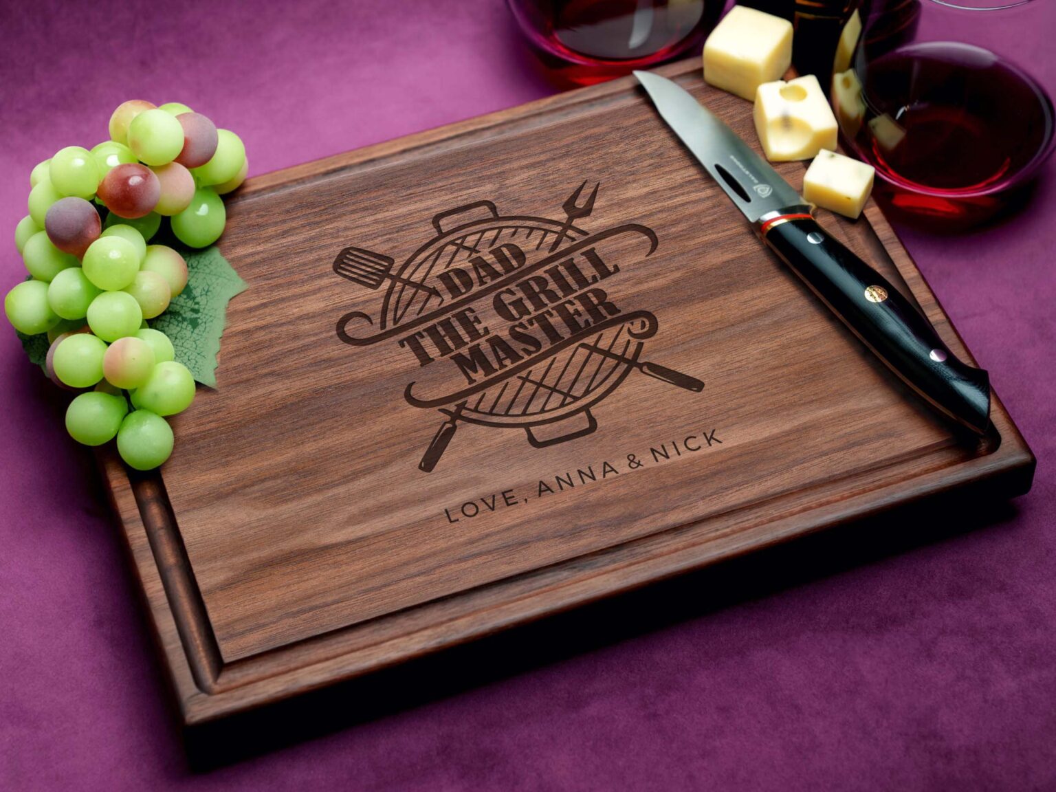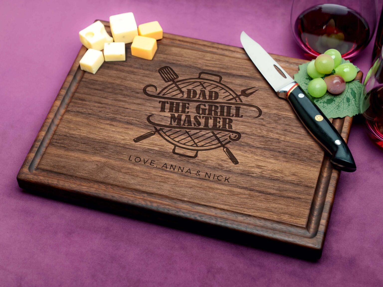 Introducing our exclusive Dad The Grill Master Design cutting board – the perfect personalized gift for Dad! Straga Products brings you this beautifully engraved and customized cutting board while adding a touch of elegance to the kitchen.