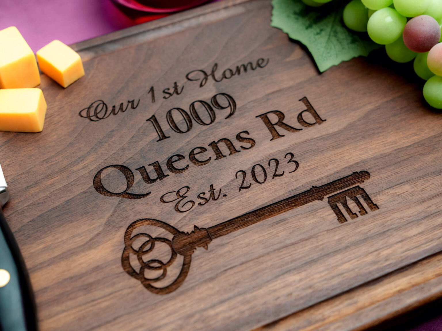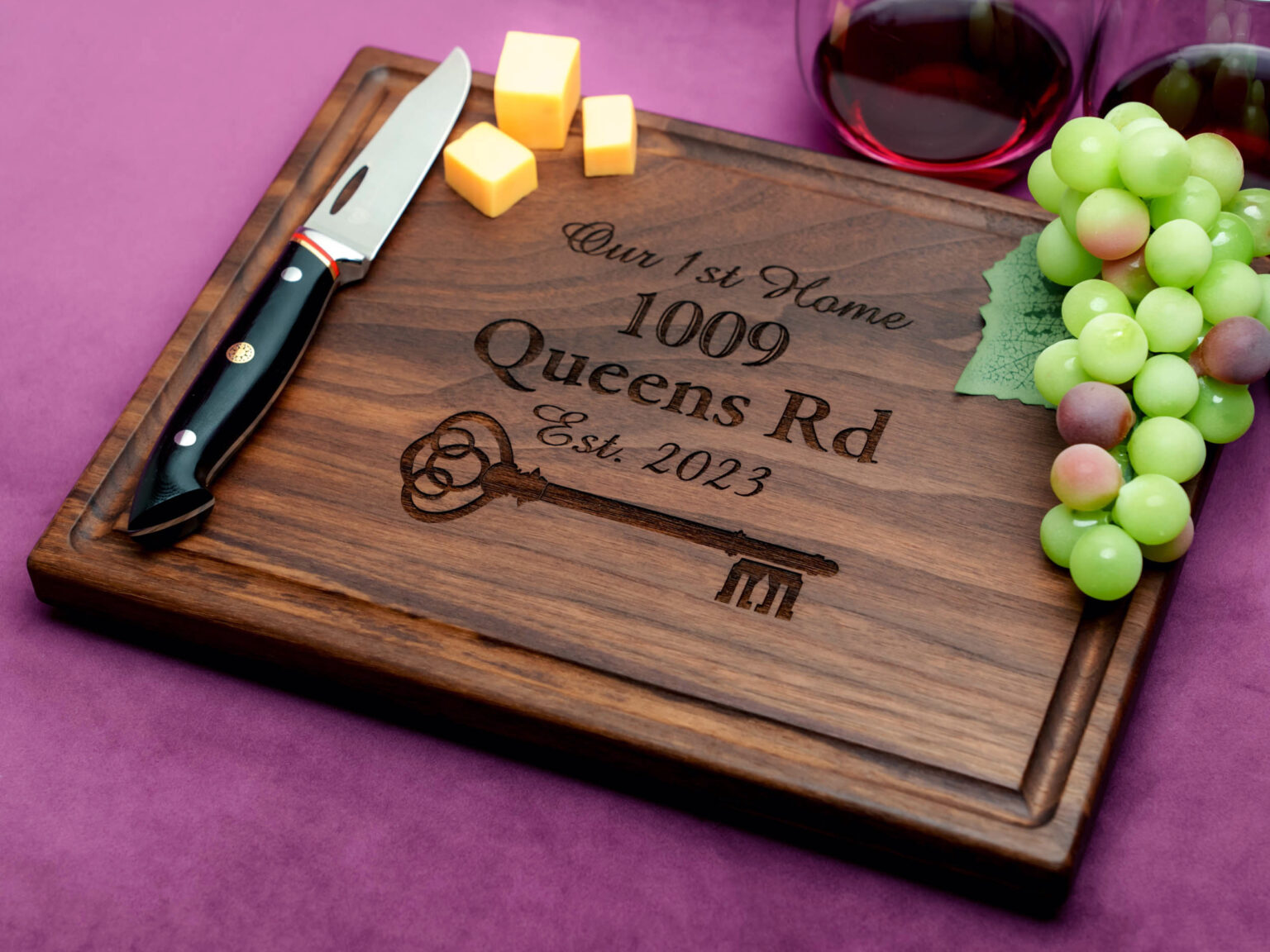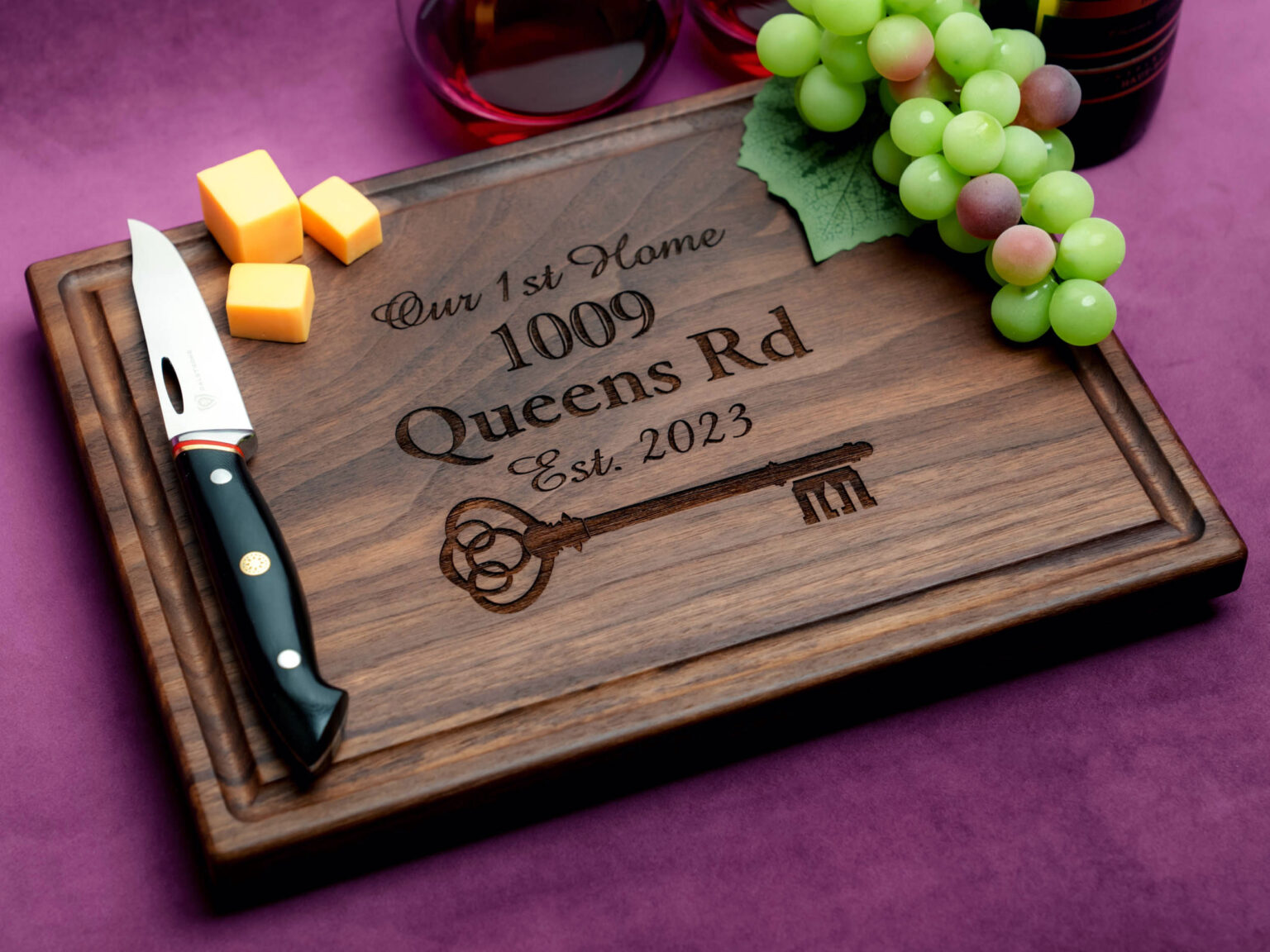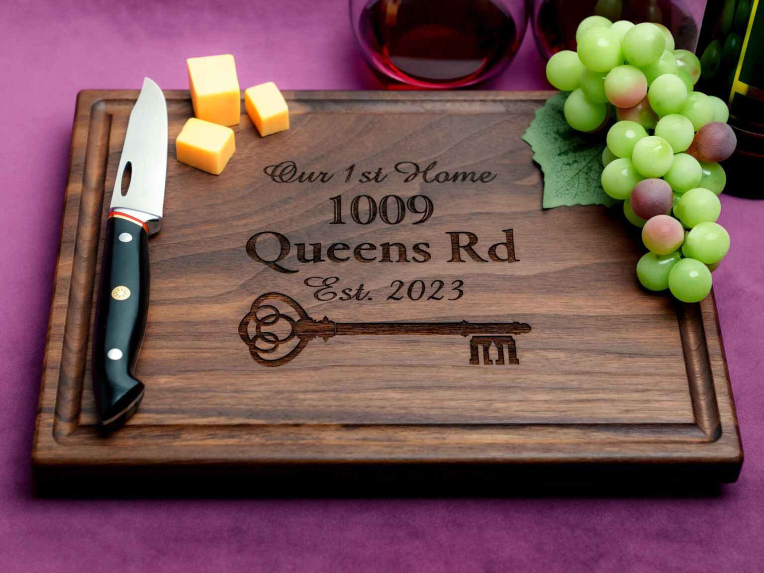 Introducing the First Home Design Cutting Board #302 – The Perfect Personalized Housewarming Gift!
