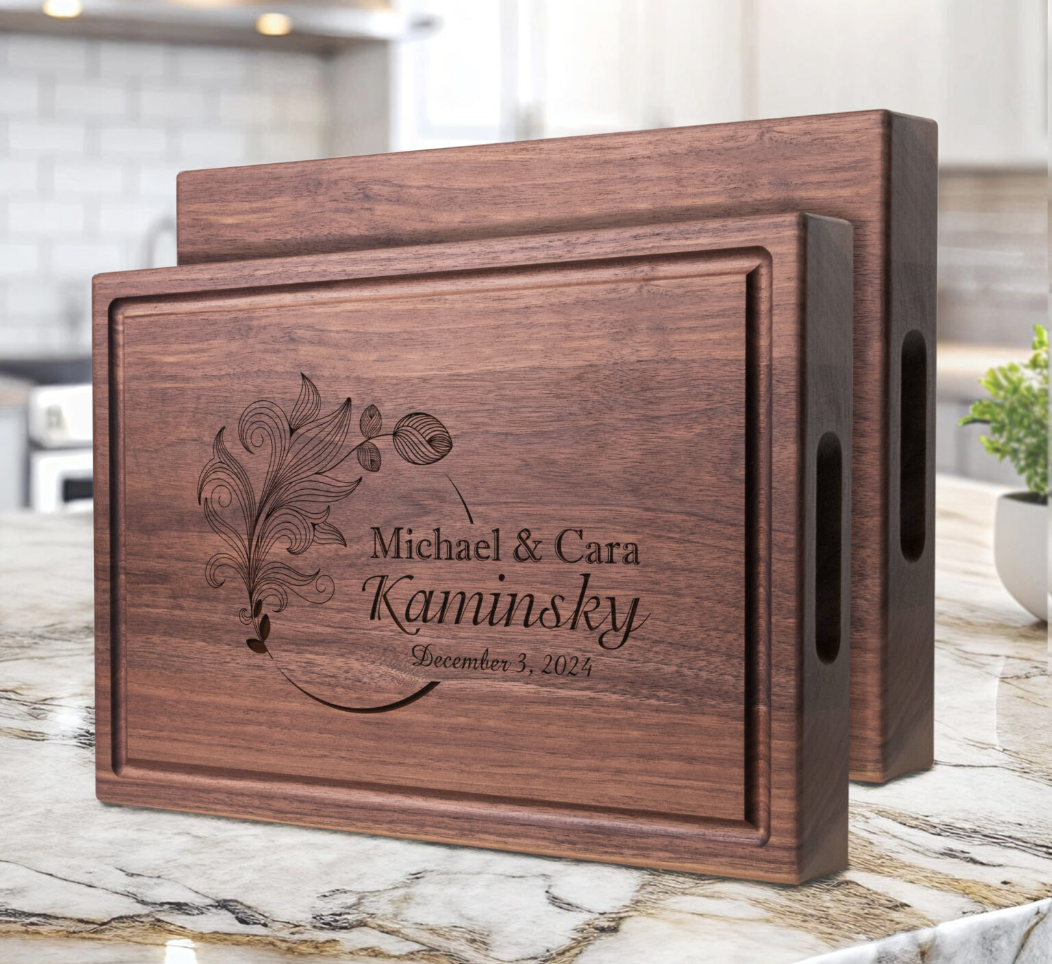 Looking for the perfect gift? Our personalized chopping blocks make a thoughtful and unique gift for weddings, anniversaries, birthdays, housewarmings, or any special occasion. With the option for custom engravings, you can personalize each board with names, dates, or messages to make your gift truly one-of-a-kind. Choose from various fonts and designs to match the recipient’s style. We also offer premium gift wrap, a personal gift note, and a sturdy tote bag to ensure your gift is presented in the most memorable way.