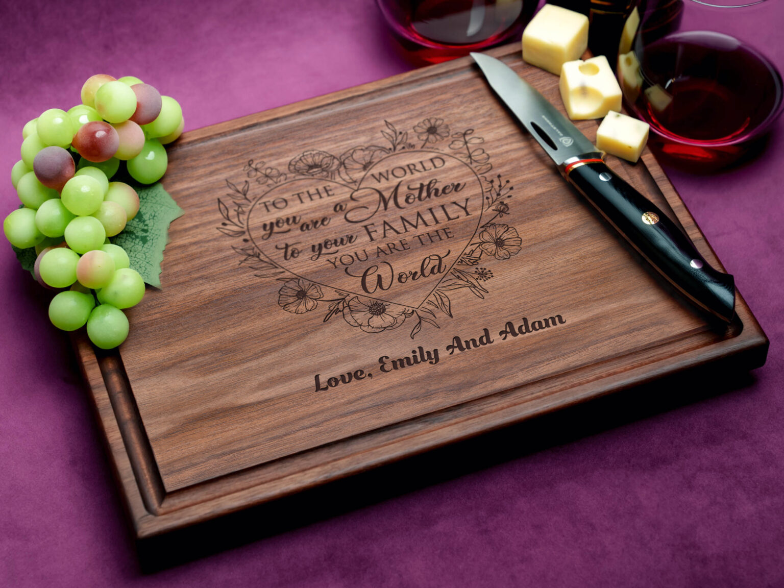 Whether you’re looking for a customized present for Mother’s Day this cutting board is sure to impress. The custom engraving option allows you to add your own personal touch, making this gift truly one-of-a-kind.