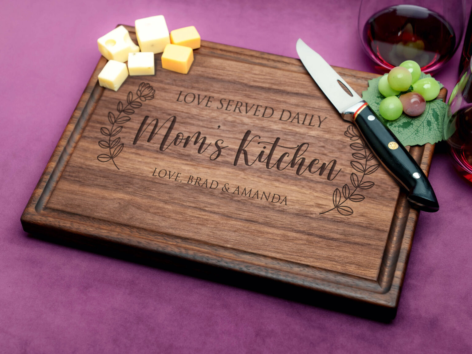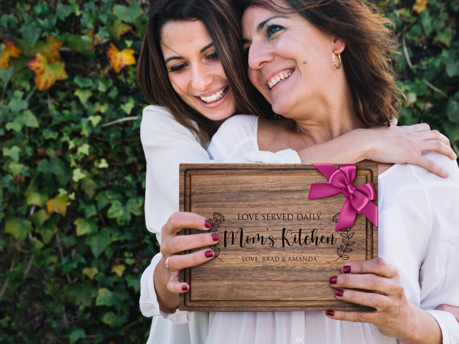 Whether you’re looking for a customized present for Mother’s Day this cutting board is sure to impress. The custom engraving option allows you to add your own personal touch, making this gift truly one-of-a-kind.