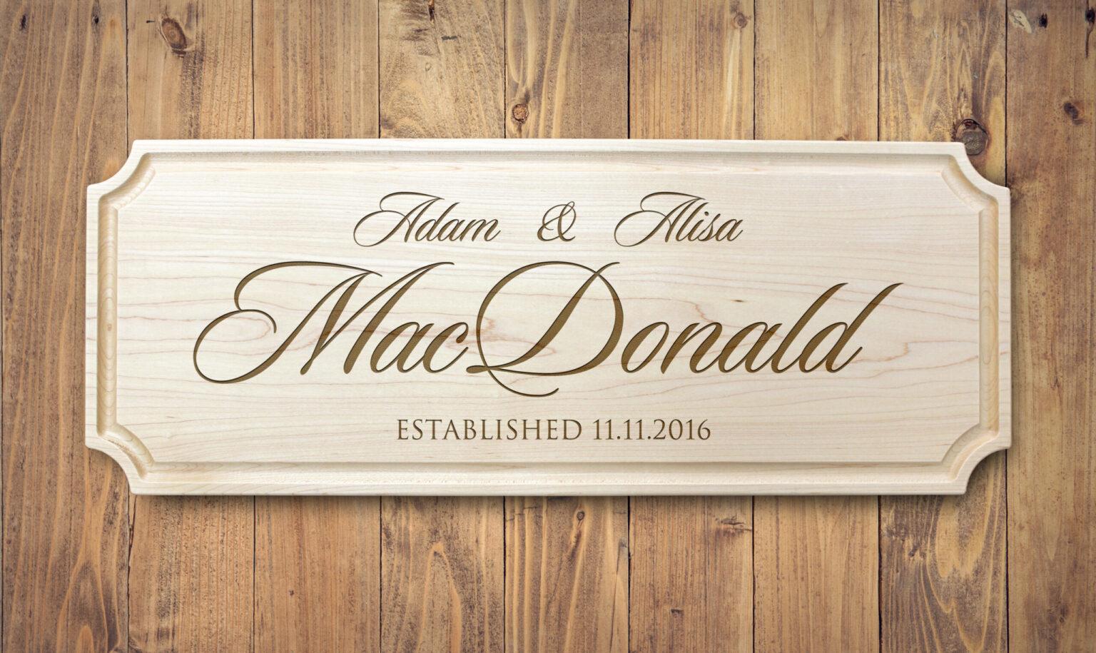 Personalized Natural Hardwood Sign. Christmas, Wedding or Housewarming Gift for Parents, Wife, Husband or Friend. Classic Couples Design #2