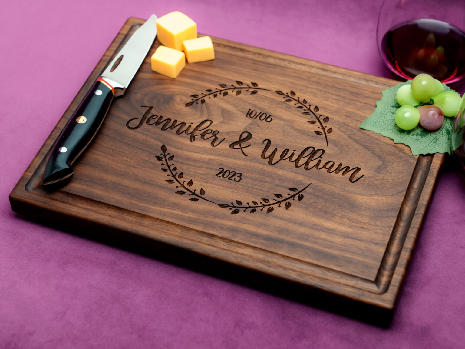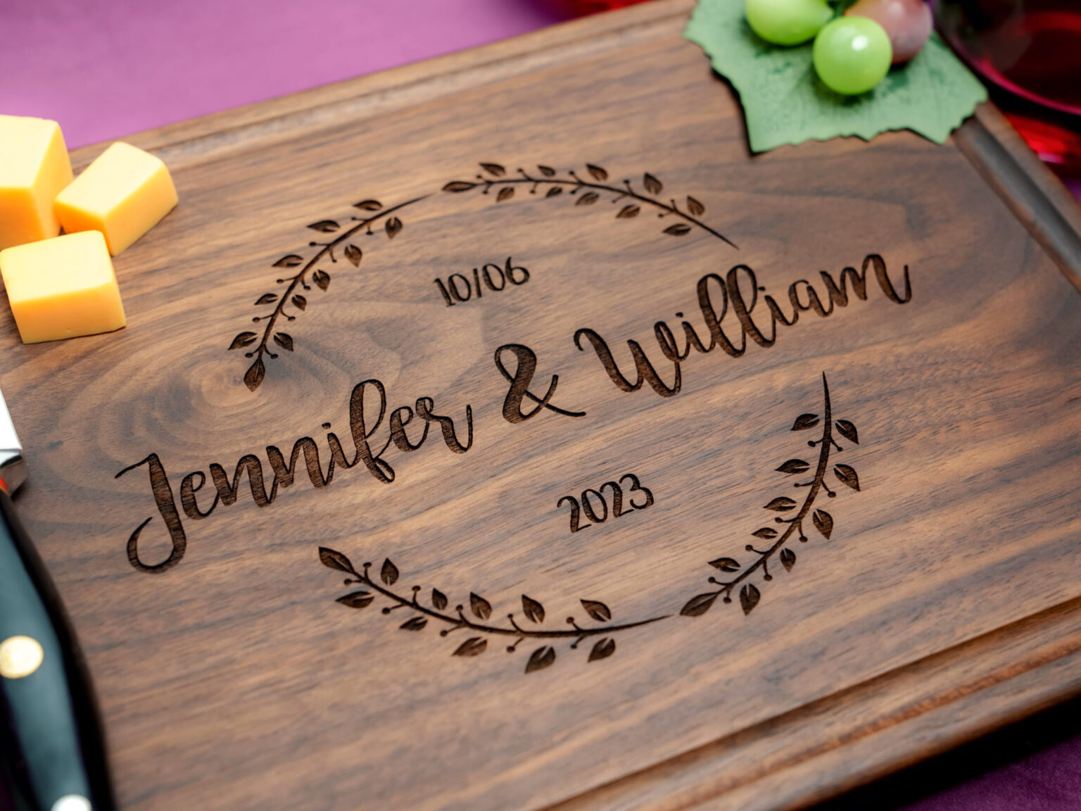 What makes this board truly special is its customization. Personalize it with the couple’s names or initials for a heartfelt gift that will be treasured for years to come. Each time they use it, they’ll be reminded of their special day and the love they share.