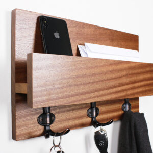 Natural Hardwood Entryway Organizer, Handmade Coat Rack, Modern Rustic Letter Key Holder, Home Decor, Floating Shelf #2