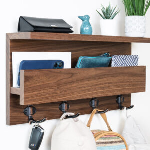 Contemporary Entryway Mail and Key Organizer with Coat and Bag Hooks, 23″ x 11″ x 5″
